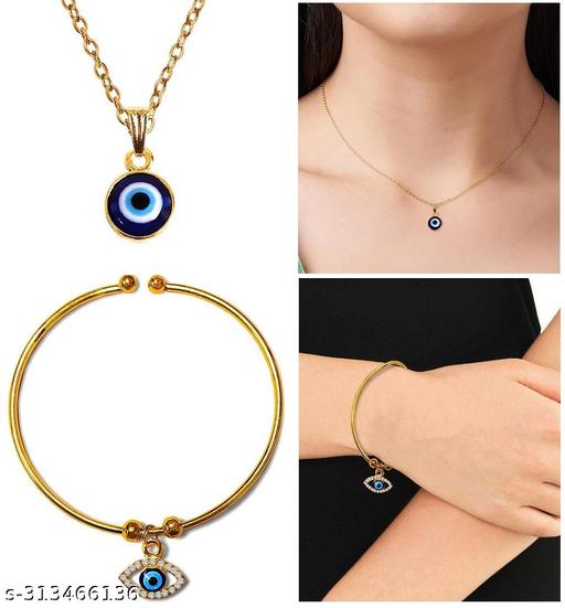 Name: Adhvik Combo Of CMB8066 Nug/Diamond Hanging/Latkan Moti Beads Evil Eye Nazar Suraksha Kavach Freindship Wrist Band Cuff Bangle Bracelet Kada & Locket Pendant Necklace With Chain