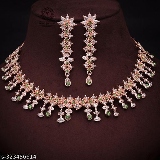 TMR CREATION American Diamond Choker Jewellery Set Necklace + 1 Pair of Earrings. Made With Pure Brass that Why Color Will Not Fade. We Used Heavy Polished Diamond in Earring Also. Its Light Weight To Wear. Skin Will not Damage Bcoz Of use Brass.Color will not Fade.