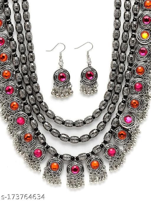Name: Beautiful Necklace & Earring for Women & Girls in Multi Color Fashion Jewelry Oxidized Silver Necklace Set
