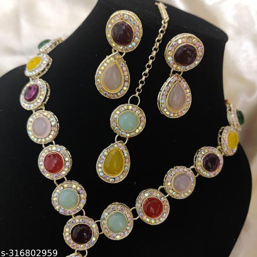 Name: Beautiful Rainbow stone studded studded necklace set