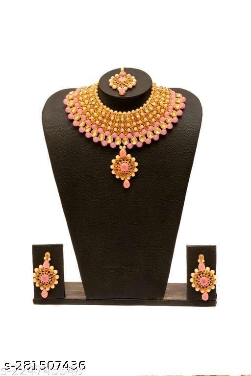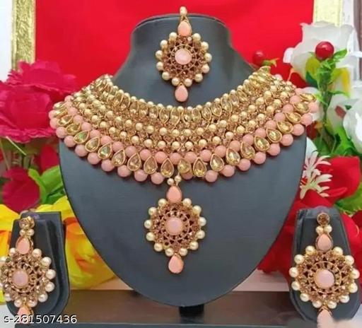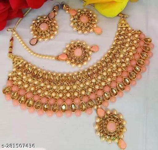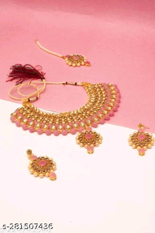 Name: Beautiful & Traditional heavy PINK Gold Pearl Necklace with Antique Stone Earrings , mangtika & Pendal