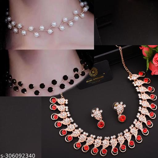 1 Rose Gold Plated American Diamond Choker set with 1 Pair of Earrings,With 2 Pearl Necklace set. Bejewelify Brings Exclusive Traditional Jewellery Designs to You from Renowned Jewellery Manufacturers all Over the India.The Best Price is Assured to You as We Remove all Middlemen Margins and Real-Estate Expenses by Directly Purchasing From International Manufacturers. Thus, Beautiful and Contemporary Fashion Jewellery is Made Available at Very Reasonable Prices to Our Valuable Customers.this jewel set features a unique one of a kind traditional embellish with antic finish.make your moment memorable with this high quality traditional jewellery.Bejewelify has Ad diamond Wedding Wear Collection Check Through Our Brand Store!!!!