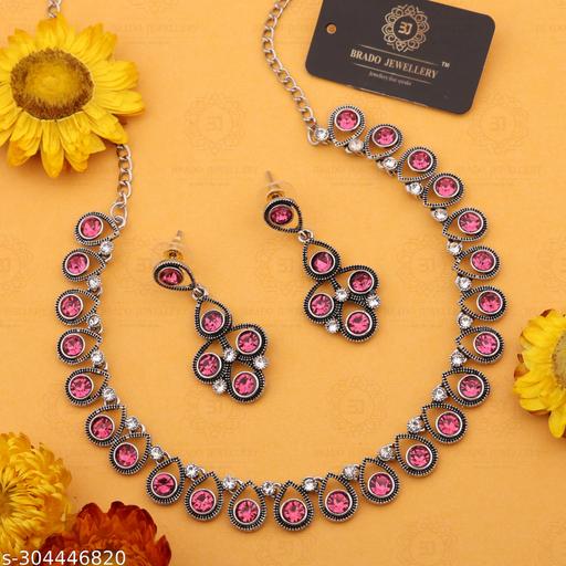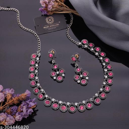 Bejewelify Exclusive Silver Necklace. Material Brass,American Diamond, Size : Free. You Can Adjust At Necklace Chain By Moving Hook, Package Contains : 1 Necklace + 1 Pair of Earring, Very easy to use being lightweight and has a design which makes it very comfortable.They wear it on different occasion. They have special importance on ring ceremony,Party, wedding and festive time. This jewel set features a unique one of a kind traditional embellish with antic finish.Perfect gift : Ideal Valentine, Birthday, Anniversary gift your loved ones. Women love jewellery.