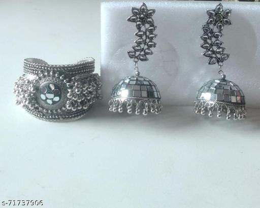 Name: Best Combo Silver Antique Oxidized Fancy Jhumki Earring & Breslets for Women and Girls