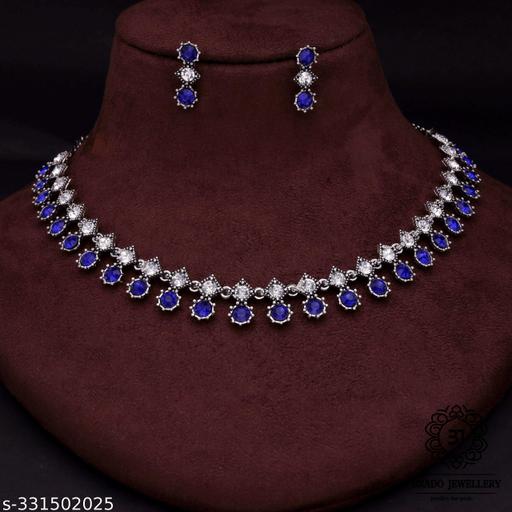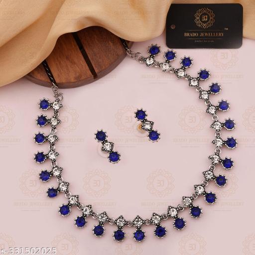 Name: BR Jewellery Silver Plated Necklace Set with Heavy Color Polished Diamond Kundan Earring Jewellery Set for Women and girls