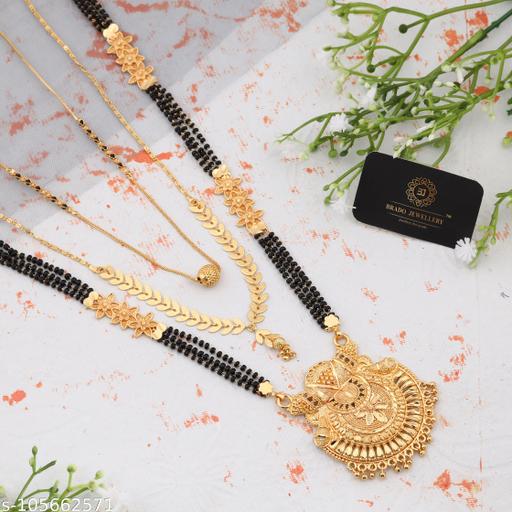 Sales Package - Pack of 3 Traditional Gold Plated Glorious Hand Meena 30 inch Long and 18 Inch Short Daily Wear Mangalsutra Tanmaniya for Women. 'Mangalsutra' – The Mark of Marriage ‘Mangal’ implies auspicious and ‘sutra’ denotes thread, both making the most significant symbol of marital bliss called ‘Mangalsutra’. Mangalsutra is an ornament of a woman denoting her marital status.We at Brado Jewellery modernised the traditional form of Mangalsutra to suit the modern woman and to glamorize your contemporary look. We at Brado Jewellery design Mangalsutras that can be worn as statement necklaces. Our jewelry is designed with fine craftsmanship and dedication to meet high expectations.Renew your life with the promise to make her your life!!!!Let your love knows the importance of the commitment, trust and real bond with Brado Jewellery Mangalsutra.