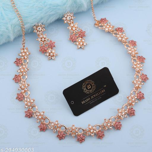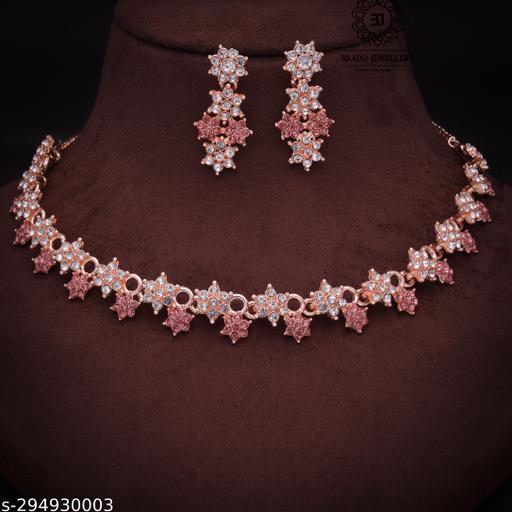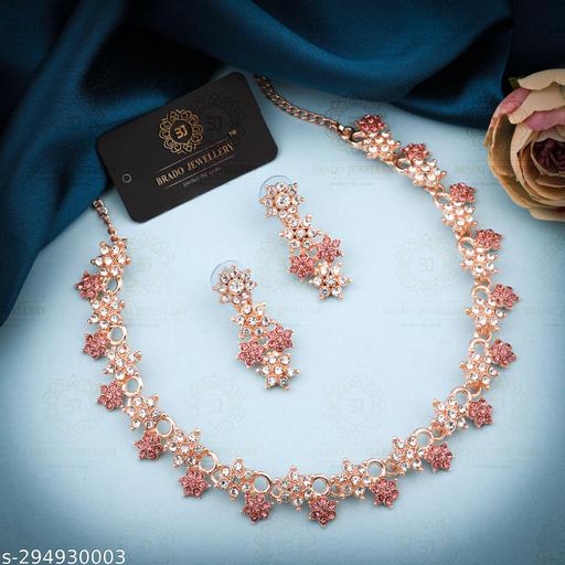 About Product :- Colour :- Rose Gold, Material : Brass, Plating : Rose Gold Plated.In The Box :- Pack of 1 Rose Gold Plated white American Diamond Choker Jewellery Set Necklace + 1 Pair of Earrings.Material : Made With Pure Brass that Why Color Will Not Fade. We Used White Heavy Polished Diamond in Earring Also. Its Light Weight To Wear. Skin Will not Damage Bcoz Of use Brass. Come With Brado Branded Box.Color will not Fade