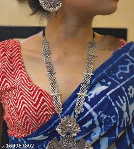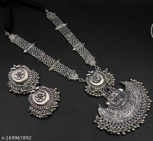 Name: BTC Afghani Oxidised Silver Jewellery Stylish Antique Long Necklace Set With Earrings For Women's And Girl's