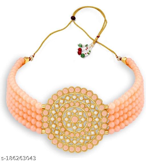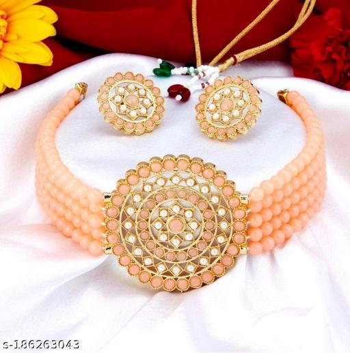 This is Elegant Peach Crystal Pearl Choker with round Stud Earrings Necklace set for woman and girls by ARB TRENDZ. This Necklace suits all type of skin colour and gives you more beautiful look. You can wear this set on daily basis, Love, Religious, Wedding & Engagement, Workwear and all purposes.