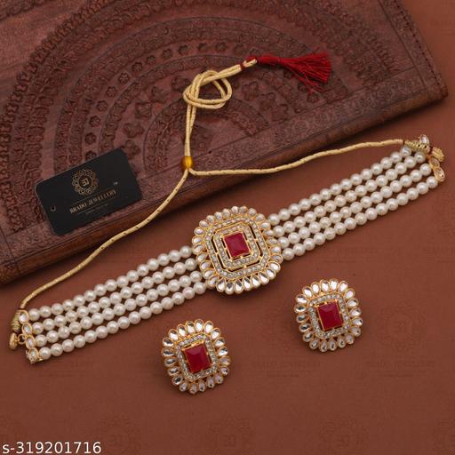 DR FASHION Crystal Moti Mala Choker necklace For Women and Girls. As Shown in Image You Will Get 1 Pair of earring and Adjustable Length Drawstring Choker Necklace set for Women and Girls. { occasion : Wedding & Engagement, Every Day, Love, Party, Regular, Ethnic Wear, festive }
