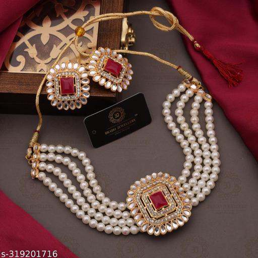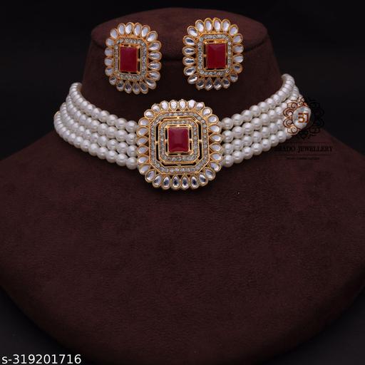 Name: Crystal White & Red Pearl Elegant Jewelry Choker Necklace With Beautiful Earrings For Women And Girls
