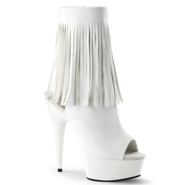6"" (15.2cm) Stiletto Heel, 1 3/4"" (4.5cm) Platform Open Toe/Heel Fringe Ankle Boot, Inner Side Zip Closure