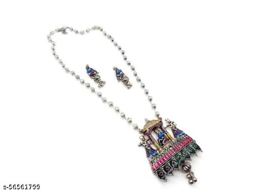 Name: DENICRAAS Silver Oxidized Doli Patti Pendant Set multicolour with earrings