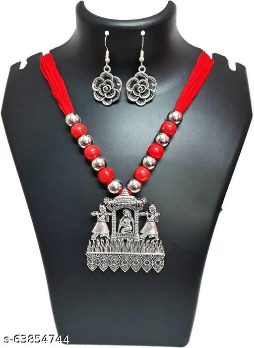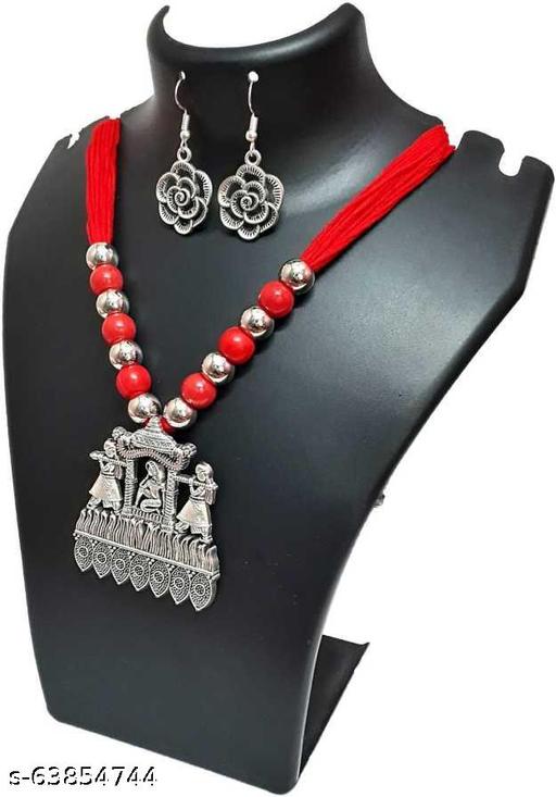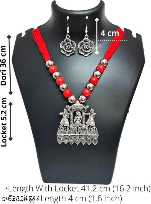 Name: DNOSITI Oxidized Cotton Dori Jewelry Set ( Red )