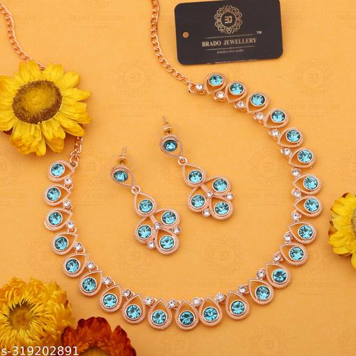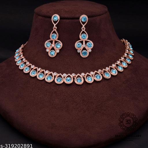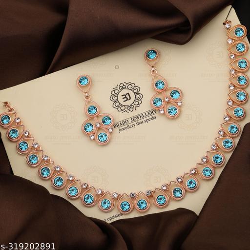 DR FASHION Exclusive Rose Gold Necklace. Material Brass,American Diamond, Size : Free. You Can Adjust At Necklace Chain By Moving Hook, Package Contains : 1 Necklace + 1 Pair of Earring, Very easy to use being lightweight and has a design which makes it very comfortable.They wear it on different occasion. They have special importance on ring ceremony,Party, wedding and festive time. This jewel set features a unique one of a kind traditional embellish with antic finish.Perfect gift : Ideal Valentine, Birthday, Anniversary gift your loved ones. Women love jewellery.