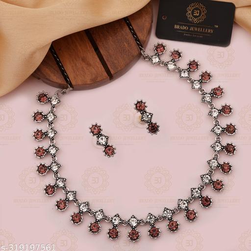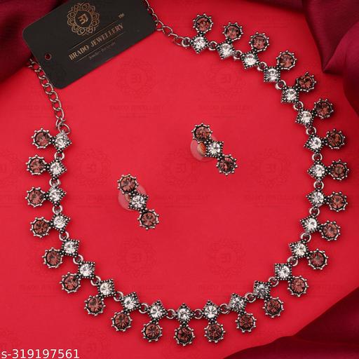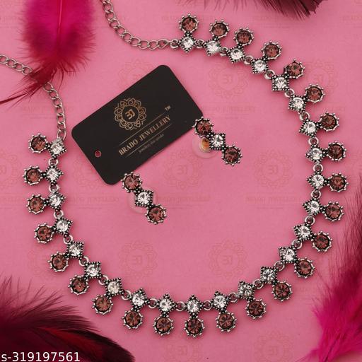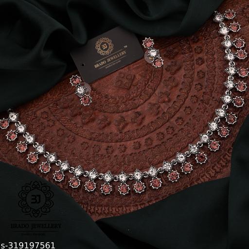 DR FASHION Exclusive Silver Necklace. Material Brass,American Diamond, LT, Silicon, Monalisa Stone. Size : Free. You Can Adjust At Necklace Chain By Moving Hook, Product Dimension : Necklace Length - 23 cm| Necklace Width - 1 cm| Earring Length - 2.5 cm| Earring Width - 1 cm, Package Contains : 1 Necklace + 1 Pair of Earring, Very easy to use being lightweight and has a design which makes it very comfortable.They wear it on different occasion. They have special importance on ring ceremony,Party, wedding and festive time. This jewel set features a unique one of a kind traditional embellish with antic finish.Perfect gift : Ideal Valentine, Birthday, Anniversary gift your loved ones. Women love jewellery.