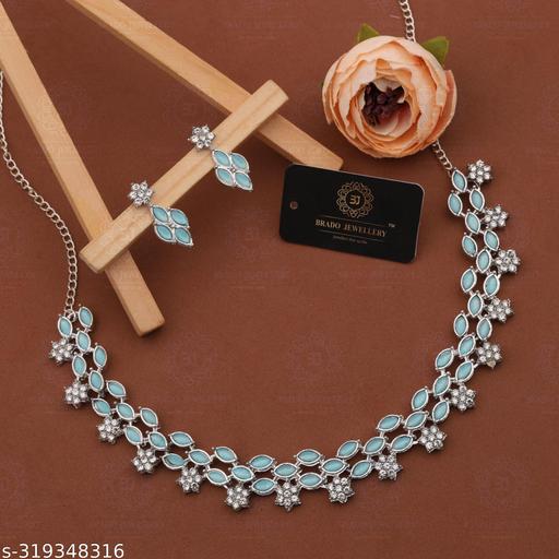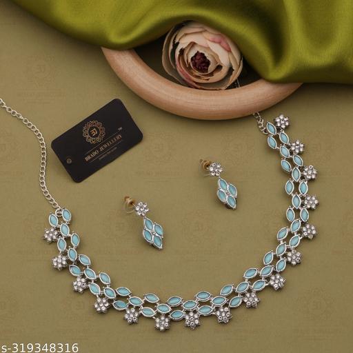 Name: DR FASHION Silver Necklace With 1 pair Of Earrings For Women And Girl