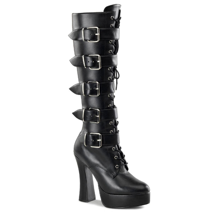 5"" (12.7cm) Stack Heel, 1 1/2"" (3.8cm) Platform Knee Boot with 5 Buckle Detail, Full Inner Side Zip Closure