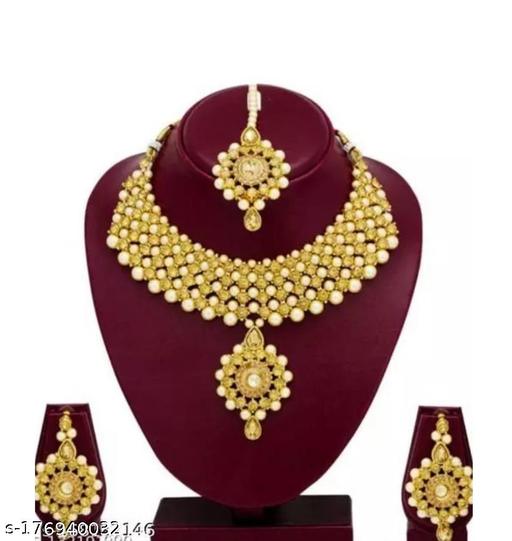 Name : Jewellery Set for Women American Diamond Necklace Set with Earrings, Jewellery for Girls and Women/Gold Plated Pearl Choker Necklace Set for Women/jewellery setTraditional Stylish Ethnic & Party Wear Multi-Stone & Pearl Beaded Choker Necklace set with Maang Tikka & Earrings (BJ 110 GOLD)