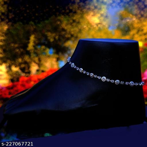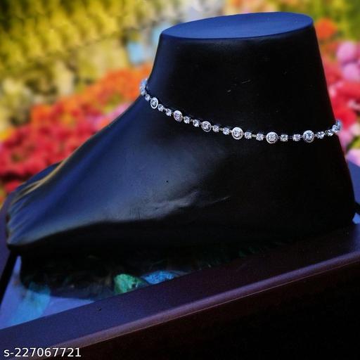 Name: Elegant White Stone Chain Payal - A Stunning Addition to Your Jewelry Collection ( pair of 1)