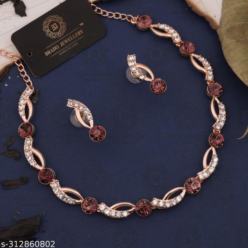 Name: Exclusive Jewellery Set Mevada Jewellery Rose Gold Necklace Jewellery Set with Earrings for Women and girls