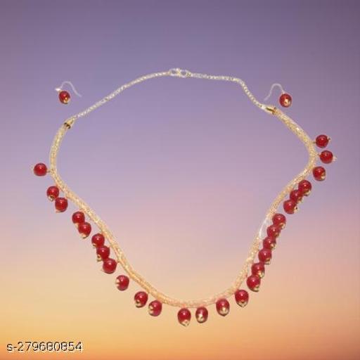 Name: Exquisite and Opulent: A Stunning Gold-Plated Jewel Set with Maroon Beads Gold-plated Plated Necklace Set for a Timeless
