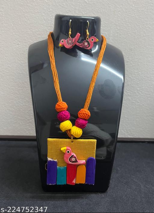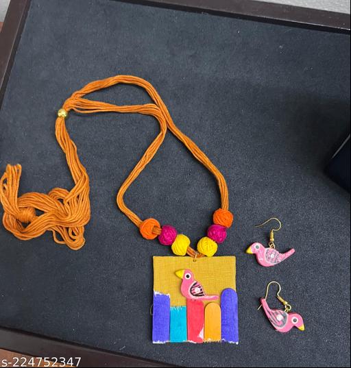 Name: Fabric handcrafted necklace and earrings for lovely women and girls