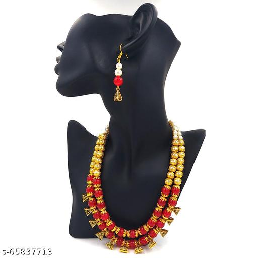 Wipe your jewellery with a soft cloth after every use. Always store your jewellery in jewellery box to avoid accidental damage. Keep water, sprays and perfumes away from jewellery.Fashion Beaded Mala Fancy Necklace Earrings Designer Jewellery Set for Women Girls/gold plated crystal red pearls necklace wuth Drop Earrings