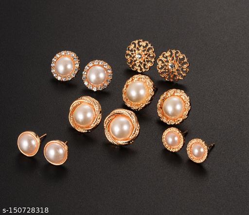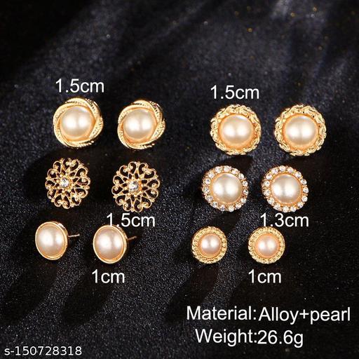 Name: Fashion Frill Delicate Gold Plated Pearl & AD Floral Stud Earrings For Women Girls Combo of 6