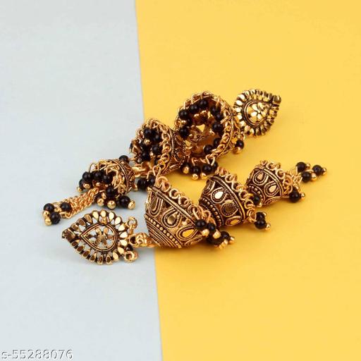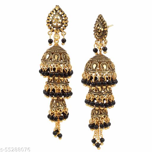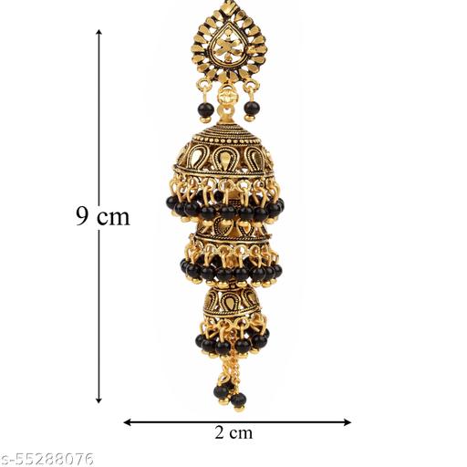 Name: Fashion Frill Ethnic Party Wear Black Coloured Light Weighted 3 Step Jhumki Earring For Girls / Women