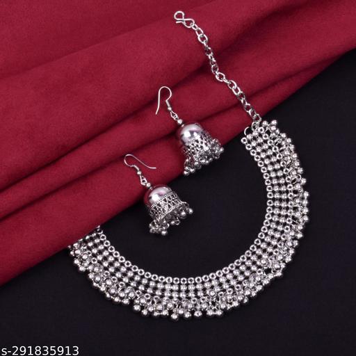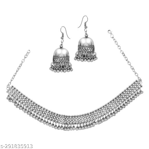 Name: Fashion Jewellery Set for Women Antique Oxidised Silver Plated Tribal Jewellery Necklace Earring Set for Women & Girls