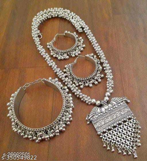 Name: Fashion latest stylish Traditional Oxidised silver Necklace Jewellery Set for women And girls