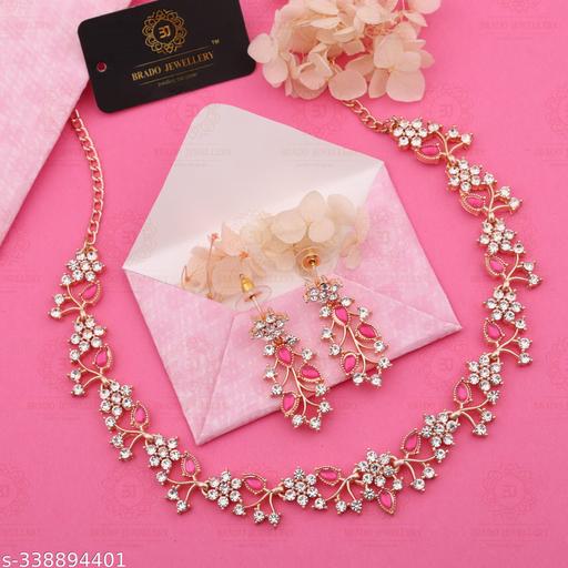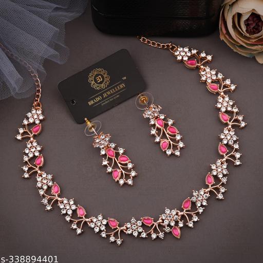 FASHION VIOLATE Rose Gold Diamond Brass, Stone, Crystal, Stainless Steel Gold-plated Rose Gold Jewel Set Choker necklace For Women and Girls (Pack of 1)
