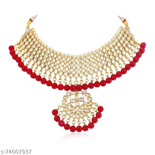Name: Gehena By Estele Gold Kundan Gold Plated Choker Necklace Set with Red Beads for Women, OS (OS-5167-MEH NKER)