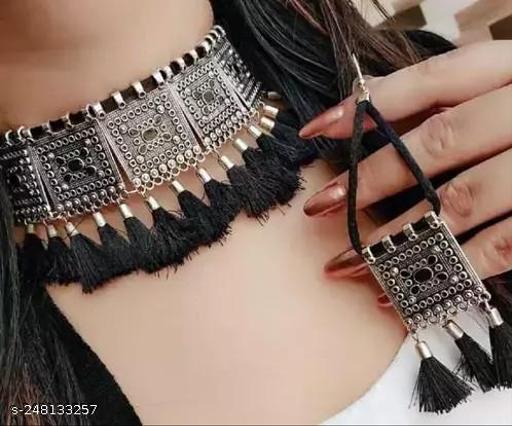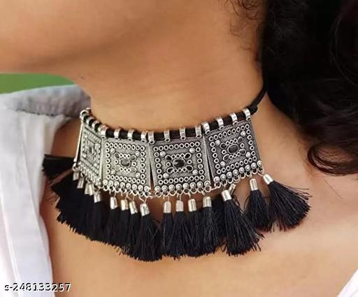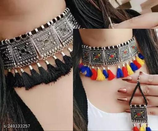 Name: Glamour gems Combo of Multicolour & Black Tasse Rajasthani Choker set for women and girls | Set of 2 Oxidised Silver Jewellery set.