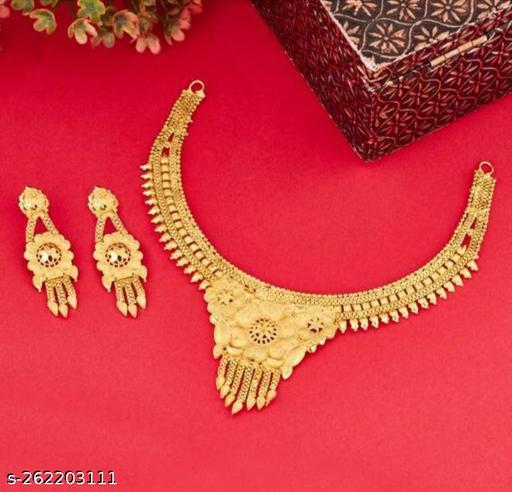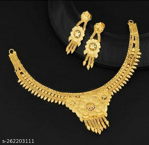 Name: GOLD PLATED TRADITIONAL 1 GRAM NECKLACE SET FOR WOMEN