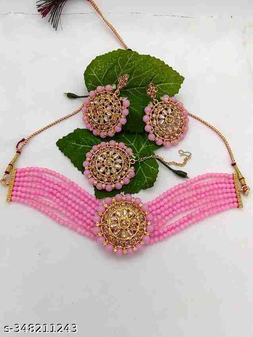 Name: Handmade Babypink Choker Necklace Set With Earrings For Women And Girls