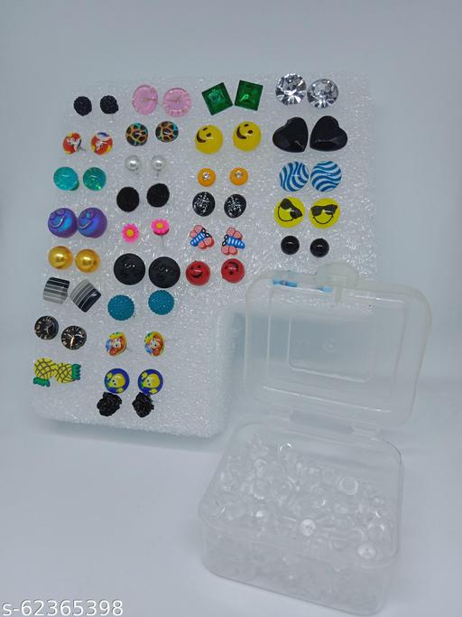 Name: Honbon Earring Set Artificial Jewellery Plastic Printed Design Stud Earrings For Girls And Women Birthday Gift For Girls And Kids (Pack of 30)