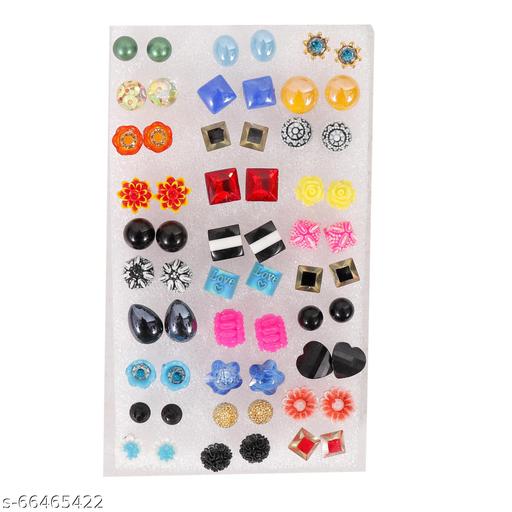 Name: Honbon Earring Set Artificial Jewellery Plastic Printed Design Stud Earrings For Girls And Women Birthday Gift For Girls And Kids (Pack of 30 pairs)