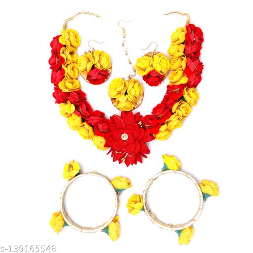 Name: Honbon Flower Jewellery Set for Ladies Mehandi /Haldi /Bridal/Baby Shower/ Marriage Bridal Artificial kathakali,Balika Vadhu Jewelry Latest Design Necklace,MaangTikka,Earrings,Bangles 1 Set
