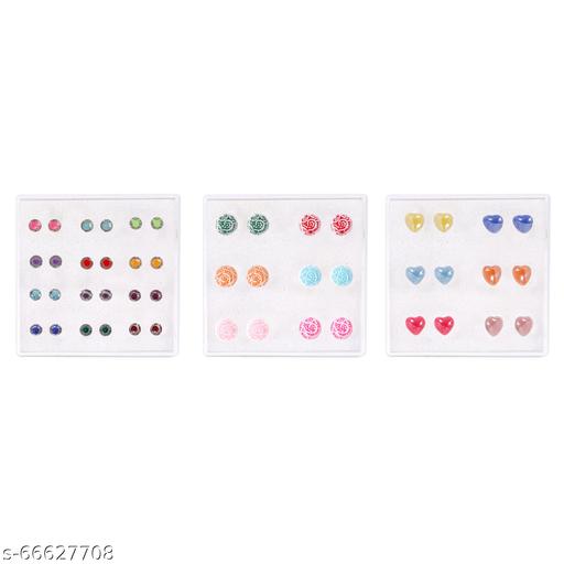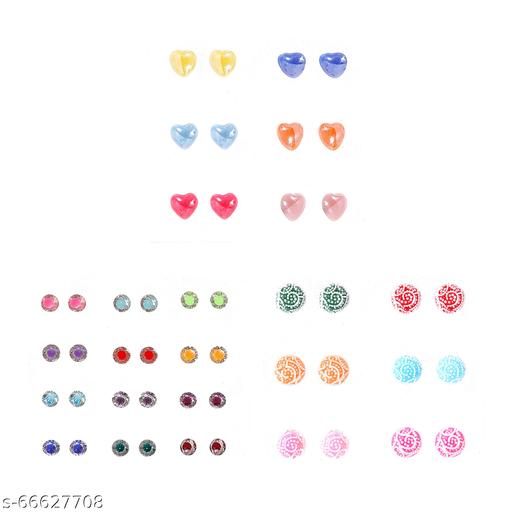 Name: Honbon Multicolor small Crystal & Heart Shape & Multi Color Round Shape Stud Earrings With Plastic Back for Girls and Women (Combo of 24 Pairs)