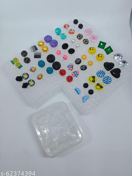 Name: Honbon Stud Earring Set Artificial Jewellery Heart, Flower Shape Multi Design Earrings For Girls And Women Birthday Gift For Girls And Kids (Pack of 30)