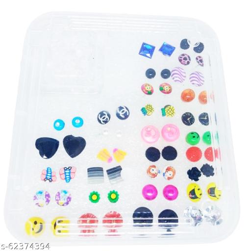 Honbon Stud Earring Set Artificial Jewellery Heart, Flower Shape Multi Design Earrings For Girls And Women Birthday Gift For Girls And Kids (Pack of 30)