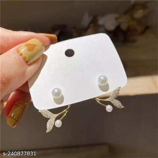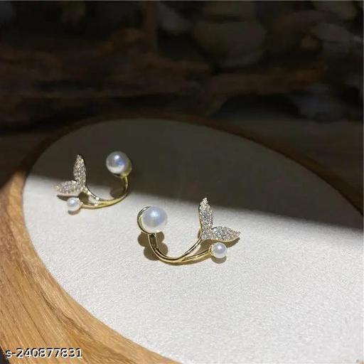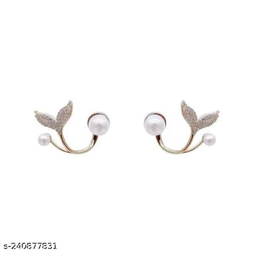 A pair of beautifully designed elegant Korean Luxury Zircon Fishtail Pearl Stud earrings for women/girls.