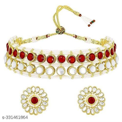 Name: INDIAN S FASHION Gold Plated Kundan Studded Choker Necklace & Stud Earrings Ethnic Fashion Jewellery Set Gift for Women & Girls