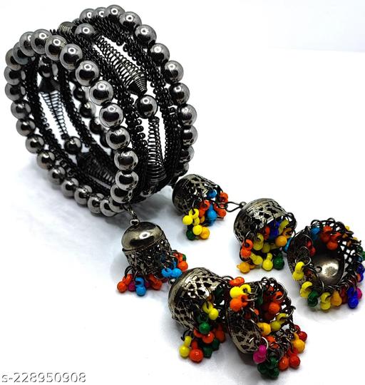 Name: Induren Combo Silver and black classic bracelets 02 with hanging beautiful beads jhumka for girls and women