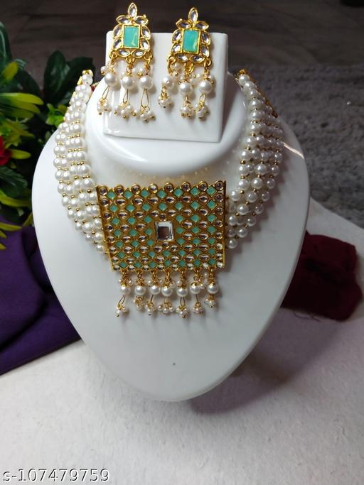 Name: J.O Collection Heavy Allure Elite Fancy Chunky Gold Bridal Alloy Gold Antique Pearl Kundan Jewellery Set