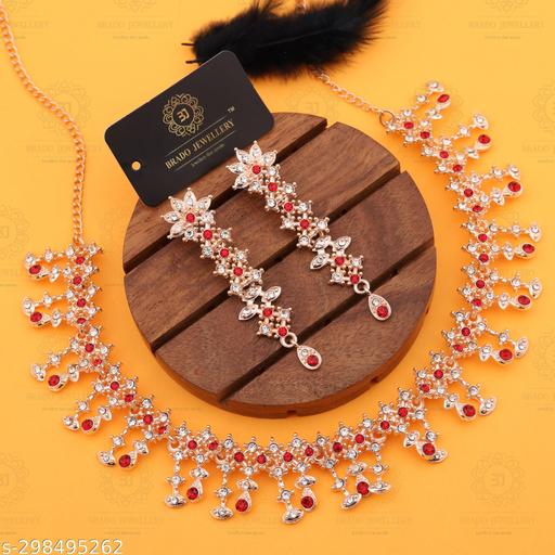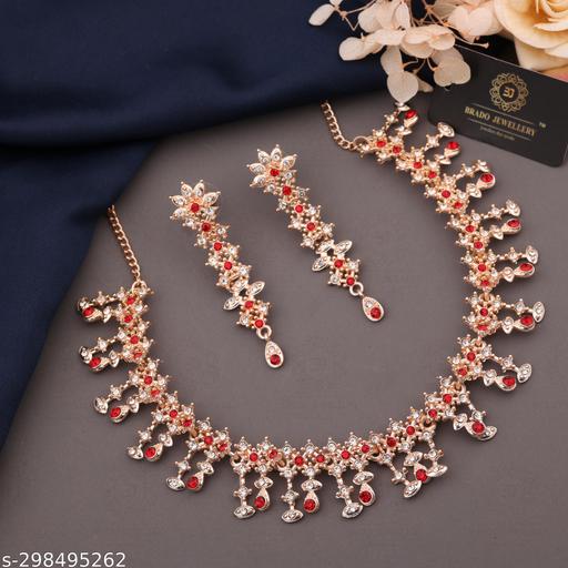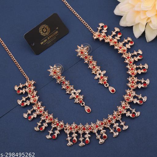 About Product :- Colour :Red and Rose Gold, Material : Brass, Plating : Rose Gold Plated.In The Box :- Pack of 1 Rose Gold Plated, American Diamond Choker Jewellery Set Necklace + 1 Pair of Earrings. Made With Pure Brass that Why Color Will Not Fade. We Used Heavy Polished Diamond in Earring Also. Its Light Weight To Wear. Skin Will not Damage Bcoz Of use Brass. Come With Brado Branded Box.Color will not Fade.