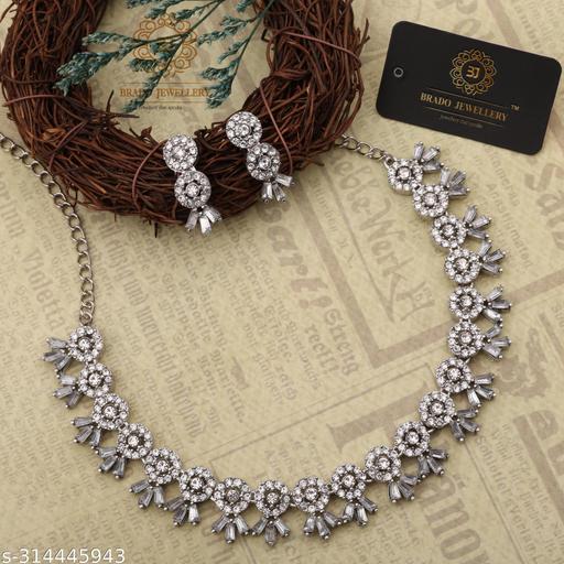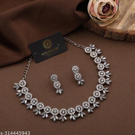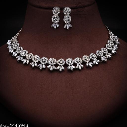 About Product :- Colour : White ,White and Silver, Material : Brass, Plating : Silver Plated.In The Box :- Pack of 1 Silver Plated White and white American Diamond Jewellery Set Necklace + 1 Pair of Earrings.Dimension :- Necklace Length - 20.32 cm, Necklace Width - 15.24 cm| Earring Length - 3.08 cm, Earring Width - 2.54 cm.Material : Made With Pure Brass.This jewellery set consists of a necklace and a pair of earrings. Silver-Plated Necklace, has AD studded detail, secured with a S Hook closure. A pair of matching Drop Earrings, each secured with a Post and Back Closure.JD SUPERSTORE is a celebration of womanhood, a celebration of the life of a confident, down to earth woman who is here in today’s modern world with traditional sensibilities and a whole lot to give and share.JD SUPERSTORE brings the best, exquisite design jewelry to you at affordable prices. Our expert eye for craftsmanship, rarity, and quality can be seen through all of our flattering designs. This breathtaking necklace with earrings jewelry set is great for making a fashion statement. It will bring you a lot of compliments. Traditional necklaces add a hint of raw ethnic beauty to any look. Representing a classic fusion of exquisite craftsmanship and feminine elegance, this set will definitely be a treasured inclusion in every woman's jewelry collection. Best gifts for mother, sister, wife, and girlfriend. Fea