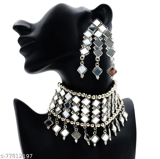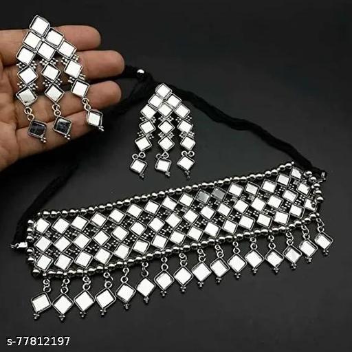 Name: Jewelhaar Oxidised Mirror Design Choker Necklace Set With Earrings